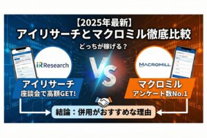 【実録】アイリサーチは稼げる?月収公開|座談会で3万円稼いだ方法と効率的な稼ぎ方を完全解説 【実録】アイリサーチは稼げる?月収公開と効率的な稼ぎ方完全ガイド この記事でわかること アイリサーチで実際にいくら稼げるのか(具…